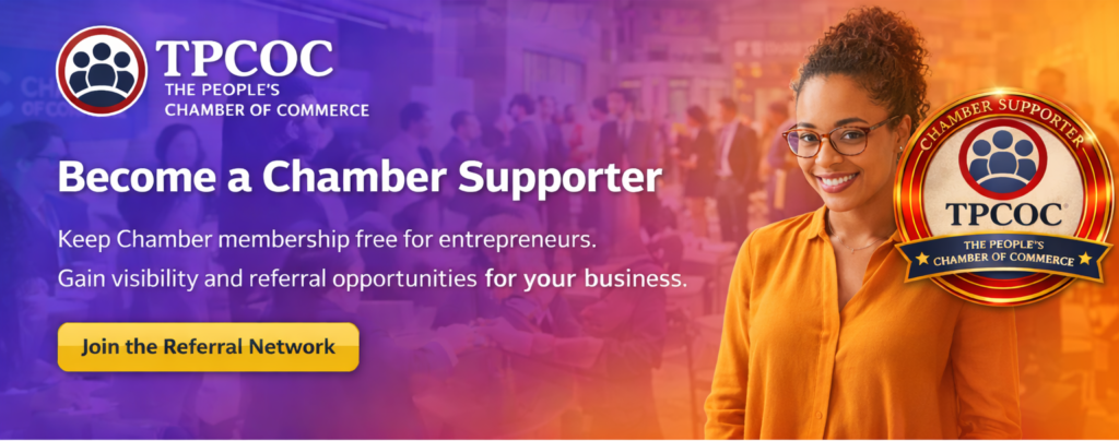A Chamber Supporter is a business, organization, or executive leader that helps sustain The People’s Chamber of Commerce so membership can remain free and accessible to entrepreneurs nationwide.